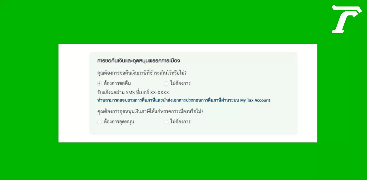 หากต้องการขอคืนเงินภาษีที่ชำระเกินไว้ ให้กดไปที่ O ต้องการขอคืน แต่หากไม่ต้องการขอคืนภาษี ให้กดเลือกที่ O ไม่ต้องการ