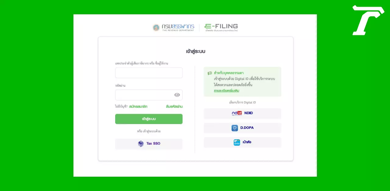 เข้าสู่ระบบ ด้วยการสมัครสมาชิกใหม่ หรือกรอกเลขบัตรประจำตัวประชาชน + รหัสผ่าน จากที่เคยตั้งไว้แล้วหากจำไม่ได้ กด “ลืมรหัสผ่าน”